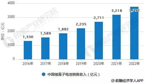 2016-2022年中国锂离子电池销售收入统计情况及预测