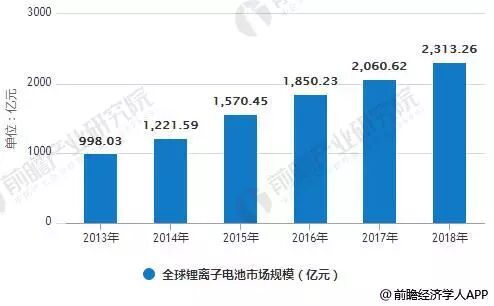 2013-2018年全球锂离子电池市场规模统计情况及预测
